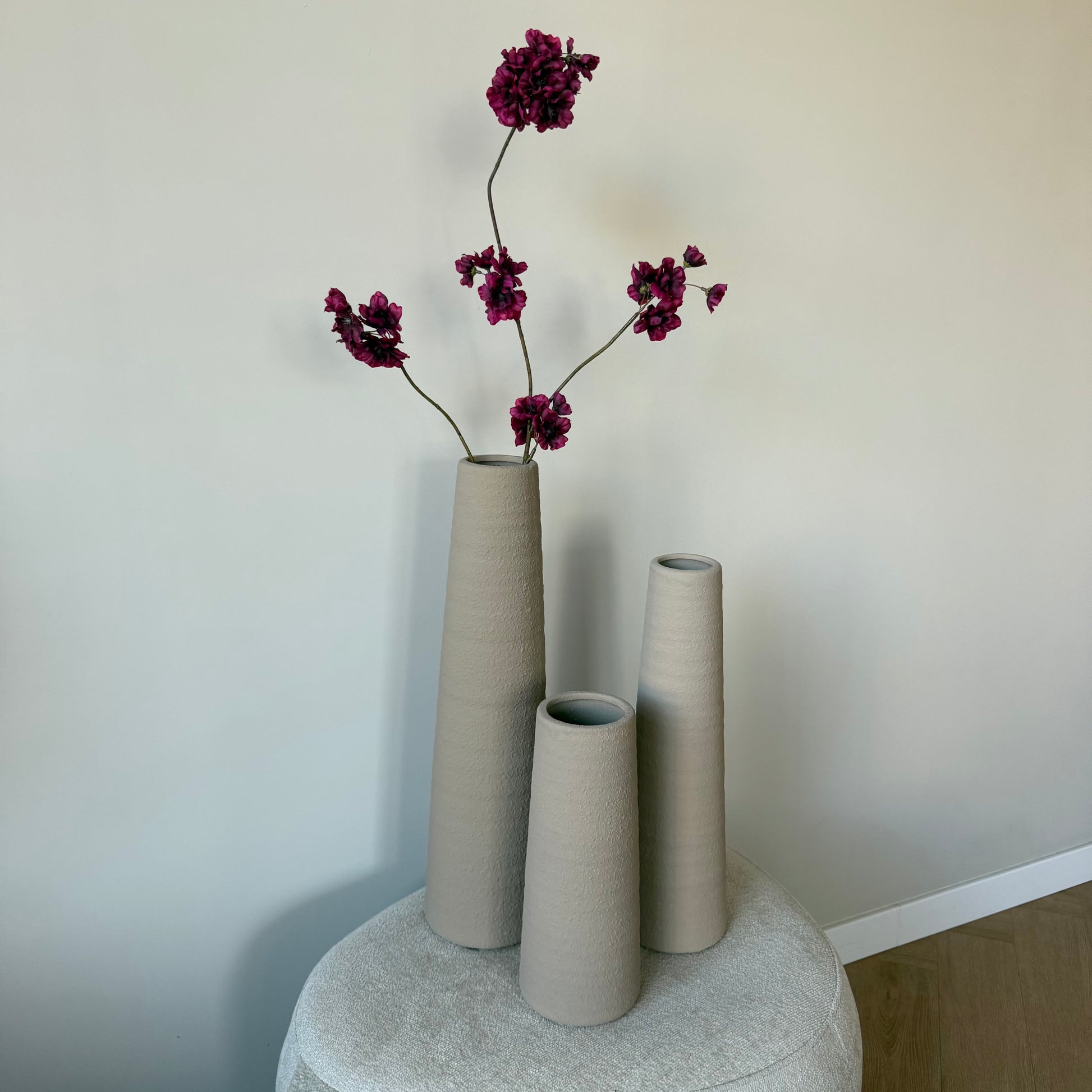 Vaas ro Nohr XL beige is een slanke vaas met een strakke, cilindrische vorm. De beige tint geeft een rustige, moderne uitstraling. Dankzij de eenvoudige belijning laat deze vaas zich makkelijk combineren in sets of met andere keramiek